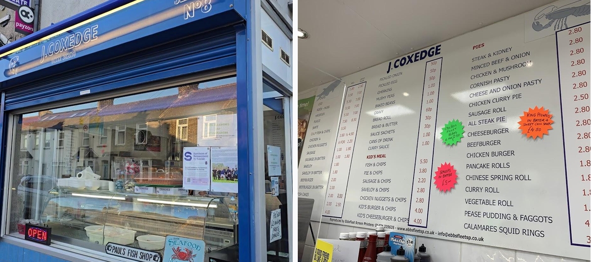 The staff are very friendly and really helpful. We all had sausage and chips and they were lovely, cooked to order, so was hot and fresh. We definitely will be visiting again when we are in the area. Highly recommend if you like traditional chip shops.